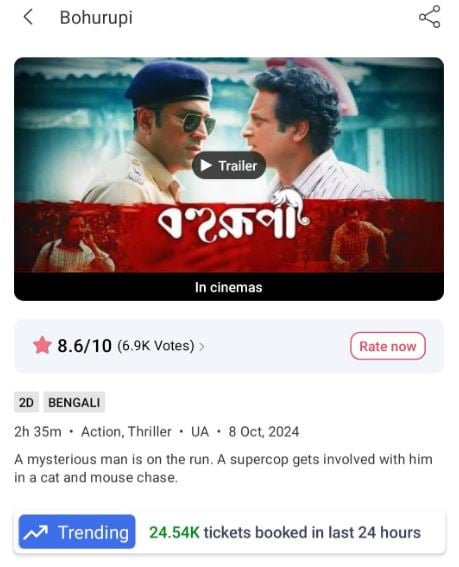 প্রতি ঘণ্টায় এক হাজারের বেশি টিকিট বিক্রি হচ্ছে ‘বহুরূপী’র। গত ২৪ ঘণ্টায় সাড়ে ২৪ হাজার টিকিট বিক্রি হয়েছে। প্রযোজনা সংস্থার দাবি, যা কিনা বাকি দুটি টলিউডের পুজো রিলিজের থেকে অনেক বেশি। বক্স অফিসে একপ্রকার ঝোড়ো ইনিংস খেলছে ‘বহুরূপী’। রেটিংও দারুণ। দশে ৮.৬। এই পুজোর মরশুমে একশোর উপরে শো হাউসফুল। এহেন সাফল্যে আপ্লুত নন্দিতা রায় ও শিবপ্রসাদ মুখোপাধ্যায়। শুধু ‘বহুরূপী’ নয়, এই সাফল্যকে পরিচালক, প্রযোজকদ্বয় বাংলা সিনেমার জয় হিসেবেও দেখছেন। সংবাদ প্রতিদিন ডিজিটালকে শিবপ্রসাদ জানালেন, “খুবই আনন্দের। এই সিনেমায় আমরা অনেক নতুন এক্সপেরিমেন্ট করেছি। এবং এখনও পর্যন্ত উইন্ডোজ-এর সবথেকে বড় বাজেটের সিনেমা ‘বহুরূপী’। দর্শকের কাছে এই সিনেমা যেভাবে গ্রহণযোগ্য হয়েছে, তাতে আমরা সত্যিই আপ্লুত। বাংলা সিনে ইন্ডাস্ট্রির কাছেও একটা বড় প্রাপ্তি বলা যেতে পারে। ‘বহুরূপী’র এমন সাফল্য আমাদের সাহস জোগাল। এর পর হয়তো ভিন্ন ধরণের সাবজেক্ট নিয়ে সিনেমা বানাতে হলে আর পিছনে ফিরে তাকাতে হবে না। আমাদের উইন্ডোজ-এর কেরিয়ারে আজ পর্যন্ত সবথেকে বেশি ব্যবসা করা সিনেমা ‘বহুরূপী’। যা কিনে রিলিজের মাত্র ৪ দিনেই সম্ভব হয়েছে।”