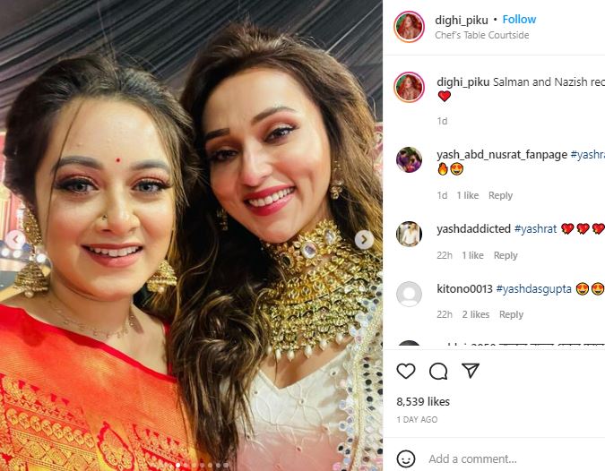 গত শনিবারই নিজেদের ইনস্টাগ্রাম প্রোফাইলে বিমাবন্দর থেকে ছবি পোস্ট করেছিলেন যশ ও নুসরত। তবে প্রথমে জানা যায়নি কোথায় গেলেন তাঁরা। শেষমেশ, ইনস্টাগ্রামেই ফাঁস করলেন বাংলাদেশে রয়েছেন যশরত। তারপরই সোশ্যাল মিডিয়ায় ভাইরাল হল ওপার বাংলার বিয়ের ছবি। যেখানে দেখা গেল নুসরত, যশ ও মিমকে।