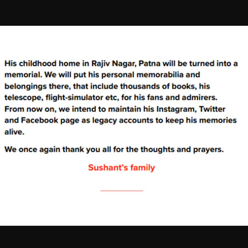 উল্লেখ্য, দিন কয়েক ধরেই সুশান্তের সোশ্যাল মিডিয়া অ্যাকাউন্টের (Sushant Singh Social Media Accounts) ফলোয়ারের সংখ্যা ওঠা-নামা নিয়ে সরগরম নেটদুনিয়া। সেই প্রেক্ষিতে জানানো হয়েছে যে এবার থেকে সুশান্তের যাবতীয় সোশ্যাল মিডিয়া অ্যাকাউন্টগুলি দেখাশোনা করবে, তাঁরই পরিবারের সদস্যরা। একটাই উদ্দেশ্য- আদরের ছেলেকে অনুরাগীদের মাঝে বাঁচিয়ে রাখা।