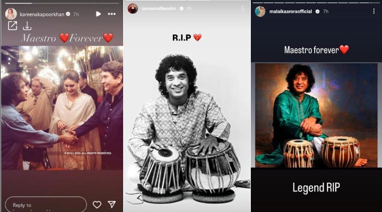 ৯.১৪- কিংবদন্তী মায়েস্ত্রোর প্রয়াণে ভগ্নহৃদয়ে শোকপ্রকাশ করিনা কাপুর খান। স্মৃতির সরণিতে হেঁটে বাবা রনধীর কাপুর এবং জাকির হোসেনের সঙ্গে তাঁর ছবি পোস্ট করেছেন। শোকপ্রকাশ মালাইকা অরোরাও।