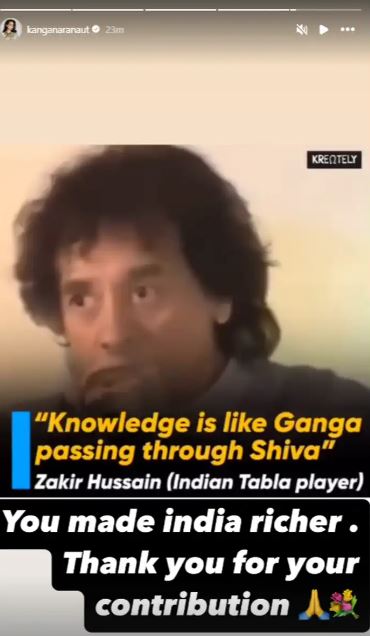 ১০.০০- ‘আপনি ভারতকে সমৃদ্ধ করেছেন উস্তাদ’, শোকবার্তা সাংসদ-অভিনেত্রী কঙ্গনা রানাউতের।