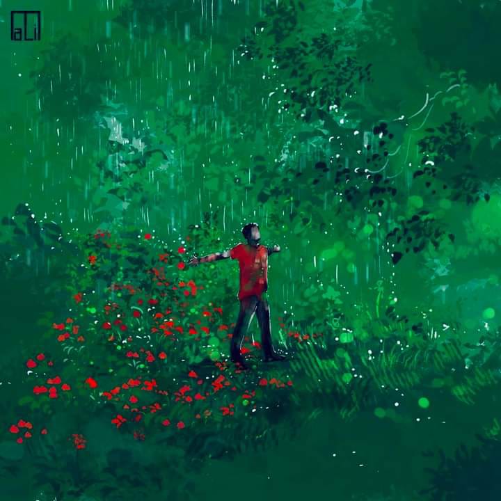 তেমনই এক ছবি মহফুজ আলির। কৃষ্ণনগরের বাসিন্দা হলেও এই মুহূর্তে কর্মসূত্রে তিনি সুদূর অস্ট্রেলিয়ায়। এঁকেছেন এক আশ্চর্য ছবি। আবু সইদের দুই হাত ছড়িয়ে রাখা ভঙ্গি, বুলেটের সামনে অনমনীয় ভঙ্গিকে তিনি রঙের স্পর্শে দিয়েছেন নতুন রূপ। যেন বুলেট নয়, শরীরে বৃষ্টি মেখে নিচ্ছেন ওই তরুণ। প্রেক্ষাপটের সবুজ ও লাল, বাংলাদেশের পতাকাকেই মূর্ত করে তুলছে। এমন ছবি আঁকলেন কেন? জবাবে শিল্পী সংবাদ প্রতিদিন ডিজিটালকে বললেন, ”মনে হচ্ছিল এরকমও তো হতে পারত। এমন এক তরুণ, তাঁর তো বৃষ্টিই প্রাপ্য। সবুজের মধ্যে দাঁড়িয়ে তিনি বৃষ্টির ফোঁটাকে ধারণ করবেন। বুলেট কেন? এই ভাবনাটা থেকেই… আসলে প্রথম থেকেই খবর পাচ্ছিলাম। কিন্তু বিষয়টা এমন জায়গায় পৌঁছে যাবে ভাবতে পারিনি।”