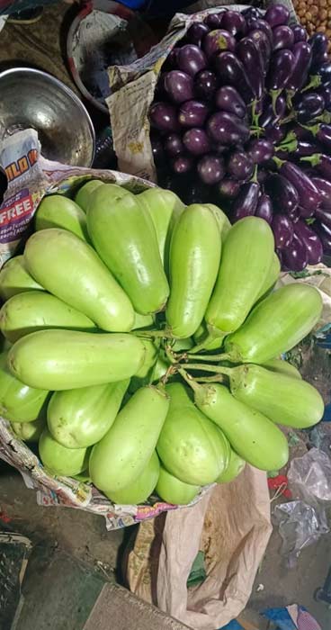বাজারে সাধারণত দেশি বেগুন মিলছে ২০ থেকে ৩০ টাকা কেজি দরে। কিন্তু ‘বালিয়া বেগুন’? ৮০ থেকে ১০০ টাকা কেজি। আর এতেই মুখে চওড়া হাসি চাষিদের। শীতের শুরুতেই জমি থেকে এই বালিয়া বেগুন (Brinjal)তোলার কাজ শুরু হয়েছে। এবারেও রেকর্ড ফলন হবে, বলছেন চাষিরাই। চাষিদের দাবি, মালদহ জেলাজুড়েই এই বেগুনের বেশ কদর রয়েছে। হালকা সবুজ রঙ। দেখতে অনেকটা সাদাটে। ইংলিশবাজার শহরের মকদমপুর বাজারের এক সবজি বিক্রেতা উদয় মণ্ডল বলেন, “সাধারণ বেগুনের চেয়ে তিন-চারগুন দাম নবাবগঞ্জের বেগুনের। সুস্বাদু বলেই মানুষ কিনছেন।’’