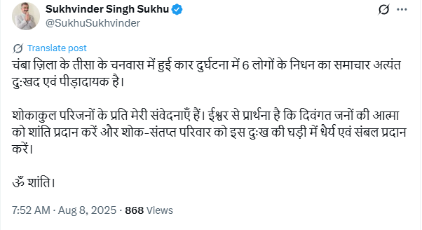 পুলিশ সূত্রে খবর, বৃহস্পতিবার সন্ধ্যায় চারচাকা গাড়িটি বানিখেত থেকে রওনা দিয়েছিল। রাত সাড়ে ন’টা নাগাদ ভাঞ্জরাডু-শাহওয়া-ভাদকওয়াস রোডের কাছে আচমকা গাড়িটি ৫০০ ফুট গভীর খাদে গিয়ে পড়ে। জানা গিয়েছে, গাড়িটিতে মোট ছ’জন যাত্রী ছিলেন। ঘটনাস্থলেই মৃত্যু হয়েছে পাঁচ জনের। মৃতদের মধ্যে রয়েছে দুই শিশু এবং এক মহিলা। বিকট শব্দ শুনে তড়িঘড়ি ঘটনাস্থলে ছুটে আসেন স্থানীয়রা। হাত লগান উদ্ধারকাজে। খবর পেয়ে ঘটনাস্থলে পৌঁছয় পুলিশ। গুরুতর আহত অবস্থায় এক যুবককে উদ্ধার করে নিকটবর্তী একটি হাসপাতালে ভর্তি করানো হয়েছে। আপাতত সেখানেই তিনি চিকিৎসাধীন। কিন্তু কী কারণে দুর্ঘটনাটি ঘটল? প্রাথমিক তদন্তের পর জানা গিয়েছে, পাহাড় থেকে একটি বড় পাথর গাড়িটির উপর পড়ে। তার ফলেই গাড়িটি নিয়ন্ত্রণ হারিয়ে খাদে গিয়ে পড়ে। ঘটনায় শোকপ্রকাশ করেছেন হিমাচলের মুখ্যমন্ত্রী সুখবিন্দর সিং সুখু। তিনি তাঁর এক্স হ্যান্ডেলে লেখেন, ‘চামবা জেলায় একটি পথ দুর্ঘটনায় পাঁচ জনের মৃত্যু হয়েছে। মৃতদের পরিবারের প্রতি আমার সমবেদনা রইল।’