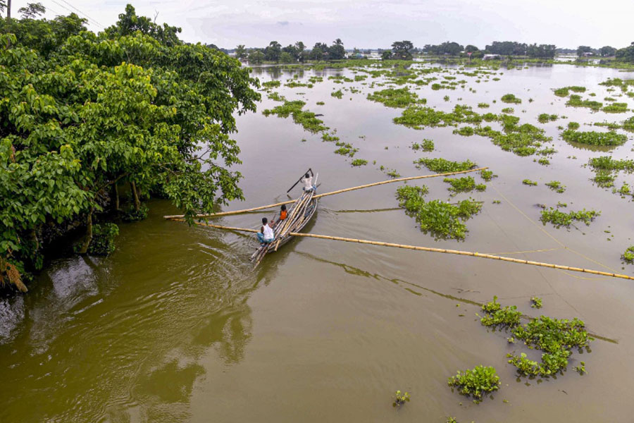 প্রায় মাসখানেক ধরে বৃষ্টি চলছে অসমে (Assam)। যার জেরে ব্রহ্মপুত্রের জলস্তর বেড়েছে। এবার তা বিপদসীমার উপর দিয়ে বইছে। ফলে একাধিক জেলা প্লাবিত। কাছাড়, কামরূপ, ধুবড়ি, নগাঁও, গোয়ালপাড়া, করিমগঞ্জ, ডিব্রুগড়, লখিমপুর, জোড়হাট, ধেমাজি, বঙ্গাইগাঁও – একের পর এক জেলা ক্রমশ ডুবন্ত। জনজীবন বিপর্যস্ত। বাড়ির বাইরে জলের স্রোত দেখে ভয়ে চোখ বন্ধ করে ফেলছেন সাধারণ মানুষজন। কোথাও কোথাও ভূমিধস নেমেছে। পরিসংখ্যান বলছে, এখনও পর্যন্ত প্রায় ৪৭ হাজার মানুষকে উদ্ধার করে ত্রাণশিবিরে (Relief camps)নিয়ে যাওয়া হয়েছে। এখনও পর্যন্ত মৃত্যু হয়েছে ৫২ জনের।