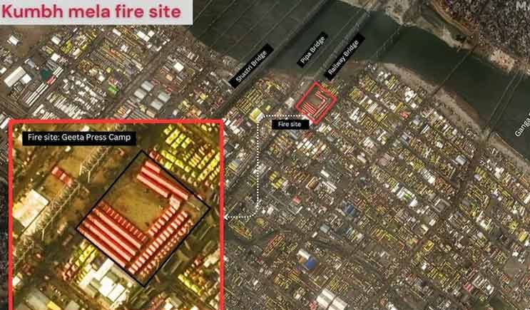 প্রয়াগরাজে গঙ্গা, যমুনা ও সরস্বতীর সঙ্গমস্থলে পুণ্যার্থীর জন্য গড়ে তোলা হয়েছে এক অস্থায়ী নগরী। ১৫ বর্গমাইল এলাকায় গড়ে তোলা সেই অস্থায়ী নগরীর আয়তন নিউইয়র্ক নগরের ম্যানহাটান বরো এলাকার দুই–তৃতীয়াংশ। মেলায় সাধুদের জন্য তৈরি হয়েছে ১০ হাজার আখড়া। রয়েছে ১ লক্ষের উপর তাঁবু ও ৫০ হাজার দোকান। যেখানে প্রতিদিন ভিড় জমাচ্ছেন হাজার হাজার মানুষ। জানা গিয়েছে ইসরোর প্রকাশিত উপগ্রহ ছবিতে এই ভিড় স্পষ্ট বোঝা যাচ্ছে। জ্বলজ্বল করছে পূজা-অর্চনার যজ্ঞ। দিন তিনেক আগে মহাকুম্ভ মেলায় অগ্নিকাণ্ড ঘটে। পুড়ে যায় সন্ন্যাসীদের একাধিক তাঁবু। কোনও প্রাণহানি না ঘটলেও একজন আহত হন। সেই আগুন লাগার মুহূর্তের ছবিও ধরা পড়েছে মহাকাশ থেকে।