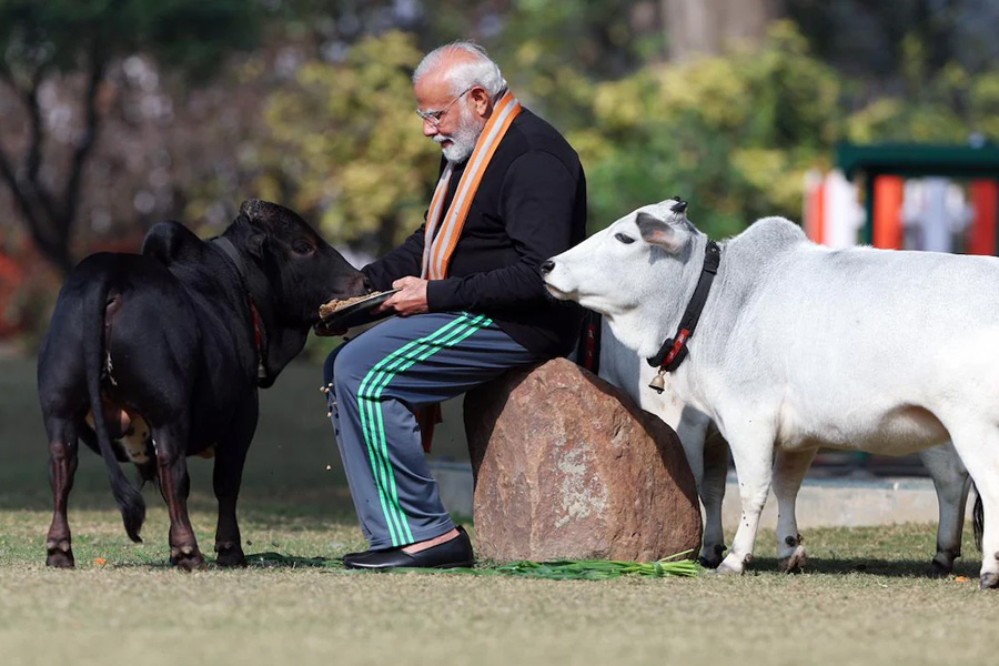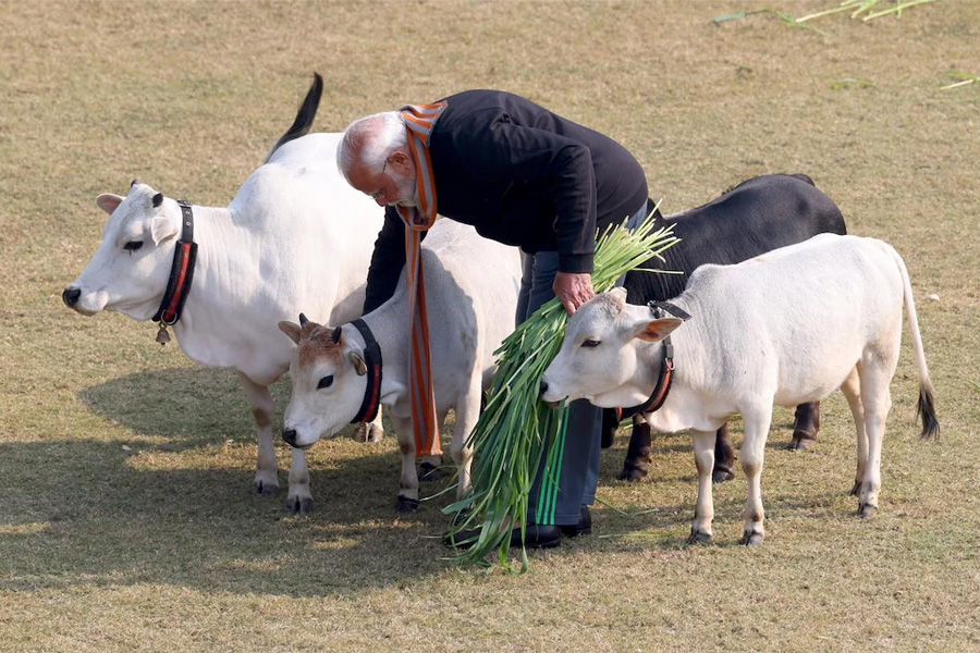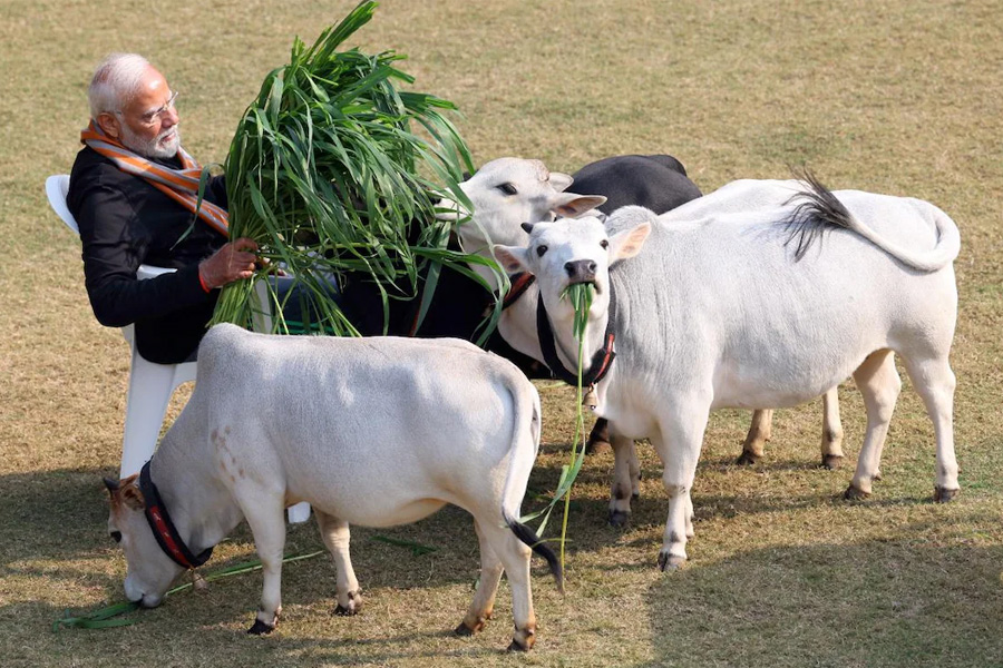 হিন্দু শাস্ত্র অনুযায়ী, মকর সংক্রান্তির (Makar Sankranti) পুণ্য তিথিতে গরুকে ভোজন করালে প্রচুর আশীর্বাদ মেলে। সেই রীতি মেনেই রবিবার প্রধানমন্ত্রীর বাসভবনেই গরুকে ভোজন করান মোদি। ৭ লোক কল্যাণ মার্গের বাগানে নিজের হাতে গরুদের মুখে ঘাস তুলে দেন। তাদের মাথায় হাত বুলিয়ে আদরও করতে দেখা যায় প্রধানমন্ত্রীকে। গরুদের জড়িয়ে ধরে রয়েছেন মোদি, সেই ছবিও ভাইরাল হয়ে যায়।