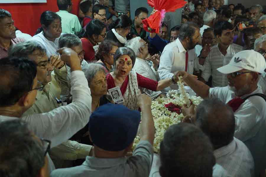 বেলা ১২.১০: আলিমুদ্দিনে পৌঁছল বুদ্ধবাবুর দেহ। তাঁকে শেষশ্রদ্ধা জানাতে রাজ্য নেতৃত্বের পাশাপাশি রয়েছেন সর্বভারতীয় নেতারা। দেহের পাশেই সবসময় রয়েছেন সুজন চক্রবর্তী, সূর্যকান্ত মিশ্র, শতরূপ ঘোষেরা।