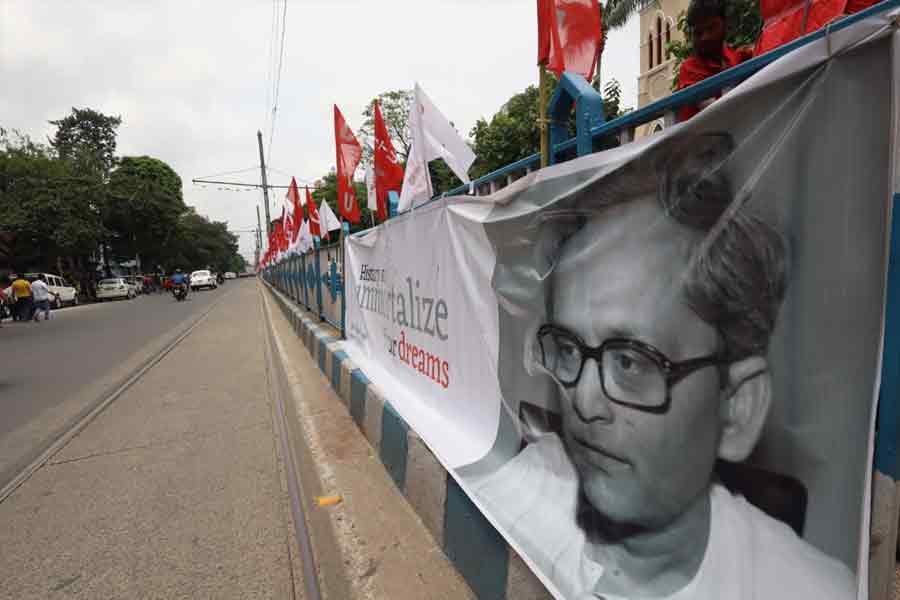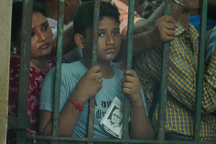 বিকেল ৪.৪৫: যতদূর চোখ যায় শুধু মাথা। প্রয়াত প্রাক্তন মুখ্যমন্ত্রীকে শেষবার দেখতে কলকাতার রাস্তায় কার্যত জনসমুদ্র। লাল পতাকায় মুড়েছে রাস্তা।