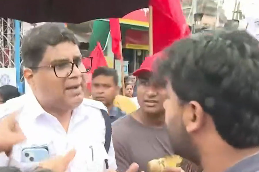 ধর্মঘটকে কেন্দ্র করে বুধবার সকাল থেকেই অশান্তি চলছে গোটা দেশে। বাদ যায়নি বাংলাও। একাধিক জায়গায় রেল অবরোধ করেন ধর্মঘটীরা। আটকানো হয় বাসও। এদিন সকালে যাদবপুর থেকে এসএফআই-এর সর্বভারতীয় সাধারণ সম্পাদক সৃজন ভট্টাচার্যের নেতৃত্বে শুরু হয় মিছিল। টায়ার জ্বালানো হয় রাস্তায়। গাঙ্গুলিবাগান এলাকায় মিছিল আটকায় পুলিশ। তখনই সৃজনের সঙ্গে শুরু হয় কথাকাটাকাটি। এক পর্যায়ে তা ধস্তাধস্তিতে পৌঁছয়। সৃজনকে ধরে টানাহেঁচড়া করা হয় বলে অভিযোগ। তাঁর হাটে চোট লাগে, ছেঁড়ে জামা।