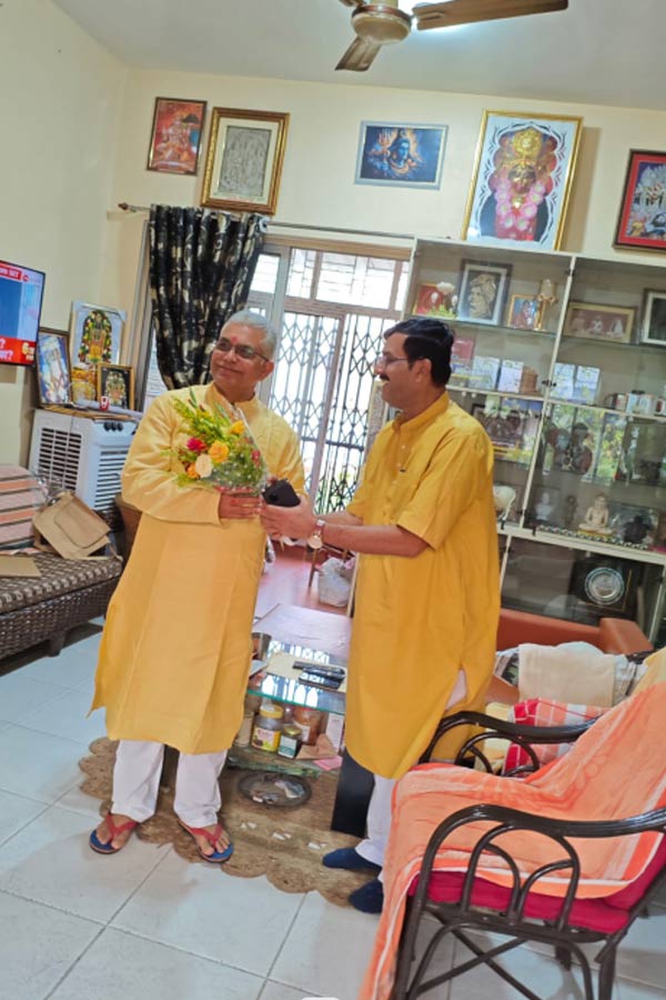 সকাল ১১.৩০: দিলীপ ঘোষের নিউটাউনের বাড়িতে বিজেপি নেতৃত্ব। উপহার দিলেন ফুল, মিষ্টি, ধুতি, শাড়ি।