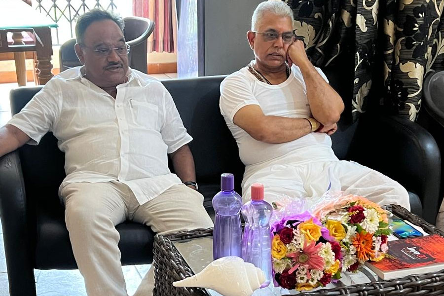 দুুুপুরে ২.২০: ধুতি-গেঞ্জিতে বাড়িতেই প্রস্তুতি শুরু করলেন দিলীপ। সঙ্গে রয়েছেন বিজেপি নেতা শমীক ভট্টাচার্য। এ প্রসঙ্গে কথা বলা হলে শমীক জানান, “দিলীপদা ডাকাবুকো নেতা। তাঁর চায়ে পে চর্চা-সহ নানা বিষয় আমাকে অনুপ্রাণিত করেছে। কিন্তু এই বিষয়টা আমাকে অনুপ্রাণিত করতে পারেনি।”