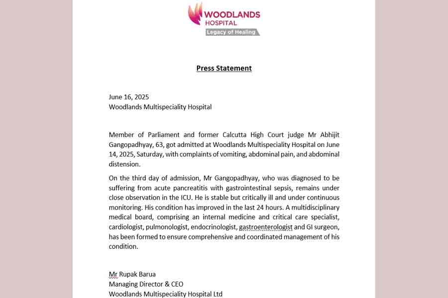 সোমবারের মেডিক্যাল বুলেটিনে জানানো হয়েছে, গত ২৪ ঘণ্টায় অভিজিৎ গঙ্গোপাধ্যায়ের শারীরিক অবস্থার উন্নতি হয়েছে। তবে এখনও আইসিইউ-তে চিকিৎসকদের কড়া পর্যবেক্ষণে রয়েছেন। স্থিতিশীল হলেও মারাত্মক সংকটজনক। ফলে আরও কিছুদিন হাসপাতালেই কাটতে চলেছে বিজেপি সাংসদের। তাঁর চিকিৎসার জন্য ইতিমধ্যে একাধিক বিশেষজ্ঞকে নিয়ে বোর্ড গঠন করা হয়েছে। রয়েছেন হৃদযন্ত্র-ফুসফুস-অগ্ন্যাশয় বিশেষজ্ঞ চিকিৎসক এবং সার্জনরা।