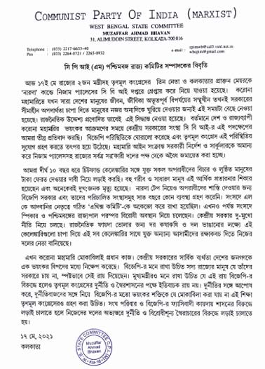 দুপুর ৩.৪৪: গ্রেপ্তারি ইস্যুতে তৃণমূলের পাশে সিপিএম। অতিমারীর সময় সিবিআইয়ের এই গ্রেপ্তার রাজনৈতিক উদ্দেশ্যপ্রণোদিত। কেন্দ্রীয় সরকারের ব্যর্থতা চাপা দিতেই এই অভিযান। বিবৃতি দিয়ে প্রতিক্রিয়া সিপিএমের।