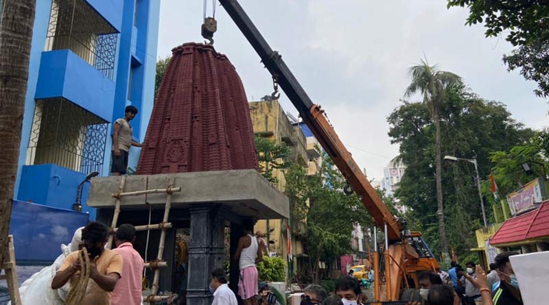 কেন হঠাৎ কলকাতার বুকে পুরীর আদলে জগন্নাথ দেবের মন্দির তৈরির সিদ্ধান্ত? কারণ জানিয়েছেন খোদ উদ্যোক্তা তথা উত্তর কলকাতার তৃণমূলের জয় হিন্দ বাহিনীর সহ-সভাপতি প্রতাপ দেবনাথ। তাঁর কথায়, “সাধন পাণ্ডেকে (Sadhan Pande) আমরা ভালবাসি। উনিই প্রথম যিনি পরপর ৯ বার বিধায়ক হলেন। এবার মমতা বন্দ্যোপাধ্যায় (Mamata Banerjee) সাধনদাকে টিকিট দেওয়ার পরই মানত করেছিলাম, যদি মানুষের রায়ে ফের দাদা ফিরে আসেন তবে পুরীর জগন্নাথ মন্দিরের আদলে কলকাতায় তৈরি করা হবে মন্দির।” সেই মতোই ভোটের ফলপ্রকাশের পর এই মন্দির তৈরির কাজ শুরু। প্রতাপবাবু জানিয়েছেন, পুরীর জগন্নাথদেবের আদলে তৈরি হলেও কলকাতার মূর্তি হবে ৪ ফুটের। পুরীর মূর্তি ৬ ফিটের। পুরীর আদলে তৈরি হচ্ছে সিংহদারও। কুমোরটুলিতেই ধীরে ধীরে মন্দিরটি তৈরি করেছেন বিখ্যাত শিল্পী মিনটু পাল। মঙ্গলবার উত্তর কলকাতায় মুচিপাড়া পোস্ট অফিস মোড়ে বসানো হল মন্দিরটি। এদিনই ক্রেন দিয়ে চূড়া বসানোর কাজ শেষ হয়েছে। জানা গিয়েছে, আগামী শুক্রবারের মধ্যে যাবতীয় কাজ শেষ হবে।