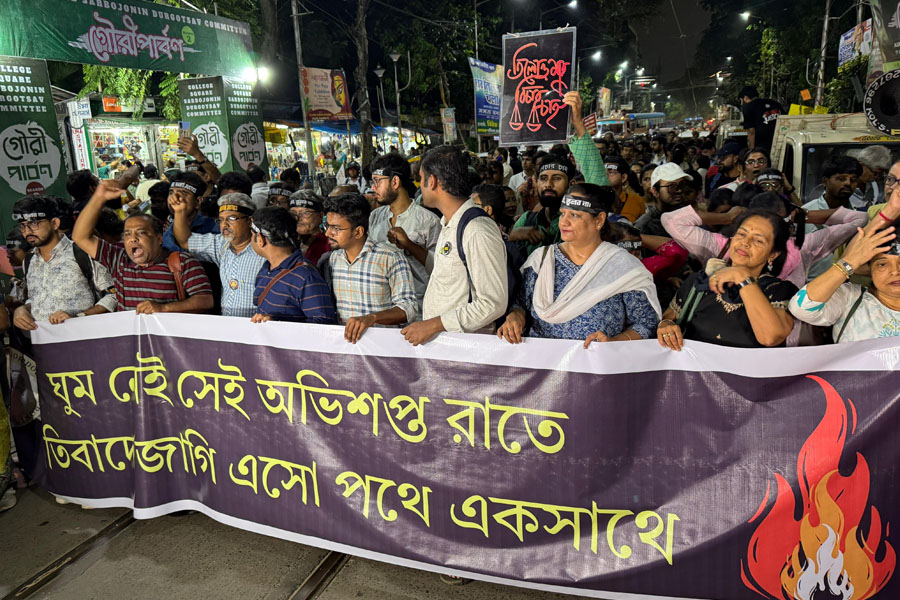 রাত ৯.০৫: অভয়ার বিচার চেয়ে শুক্রবার রাত দখলে নামল ‘ওয়েস্ট বেঙ্গল জুনিয়র ডক্টরস ফোরাম’। রাত ৯টায় কলেজ স্কোয়ার থেকে শুরু হয়েছে মিছিল। অভয়ার বিচারের দাবিতে ব্যানার, জাতীয় পতাকা হাতে স্লোগান দিতে দেখা যায় প্রতিবাদীদের। মশাল হাতেও পথে নামেন জুনিয়র ডাক্তাররা।