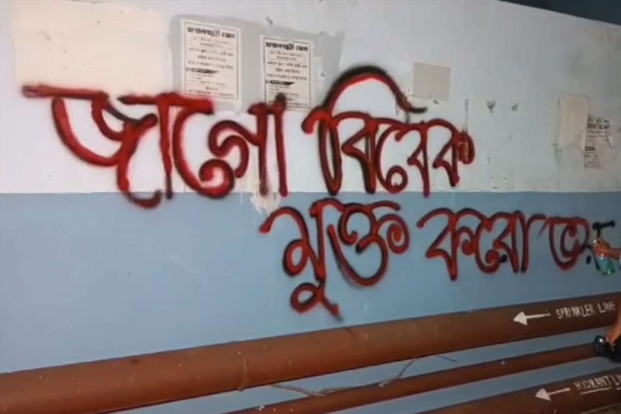 রাত ১১টা ১০: আরজি কর-কাণ্ডে বিচারের দাবিতে মালদহ মেডিক্যাল কলেজ হাসপাতালে দেওয়াল লিখে প্রতিবাদ জুনিয়র চিকিৎসকদের।