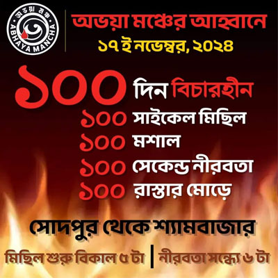 শ্যামবাজারে মিছিলে পুলিশি বাধা প্রসঙ্গে বলেন, “এটা কেন হল পুলিশ-প্রশাসন ভালো বলতে পারবে। তবে, প্রথম দিন থেকেই দেখছি বাধা দিচ্ছে। পরে আবার অনুমোদন দিচ্ছে। কিছুই বুঝতে পারছি না। অভয়ার মায়ের কথায়, “বিচার নিয়ে আমরা কোনও কথা বলবো না। তবে ১০০ দিন নয়, আমরা প্রতিটা সেকেন্ড, প্রতিটা মিনিট প্রতিটা ঘণ্টা গুনছি বিচারের আশায়। ৯ই আগস্টের ফোন আমাদের বুকে যে মশাল জ্বালিয়েছিল সে মজাল আজও জ্বলছে। আমাদের আন্দোলন ঠিকমত চালিয়ে যেতে হবে। বিচার না মিললে আমরা বিচার ছিনিয়ে আনবো।”