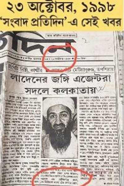 কাট টু ২৩ অক্টোবর, ১৯৯৮। ‘সংবাদ প্রতিদিন’ প্রথম পাতা। খবরের শিরোনাম ‘লাদেনের জঙ্গি এজেন্টরা সদলে কলকাতায়’। ওই খবরের মধ্যেই লেখা ছিল লাদেনের টার্গেট নিউ ইয়র্কে (New York) ওয়ার্ল্ড ট্রেড সেন্টারে বোমা মারা। ফলে, যাঁরা ২০০১ সালে বলেছিলেন ‘ভাবা যায় না’, তারা ভুল বলেছিলেন। এটি একটি আন্তর্জাতিক এক্সক্লুসিভ (Exclusive)। ‘সংবাদ প্রতিদিন’-এর মতো বাংলা কাগজে প্রকাশিত হওয়ায় আন্তর্জাতিক দুনিয়া পাত্তা দেয়নি। বাস্তব হল, এর থেকে বড় এক্সক্লুসিভ আজ পর্যন্ত কোনও বাংলা কাগজে এমনকী, পৃথিবীর কোনও কাগজে প্রকাশিত হয়নি।