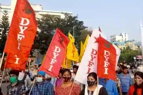 রাজ্য SSC’র শিক্ষক বা গ্রুপ ডি কর্মী নিয়োগে একাধিক অস্বচ্ছতার অভিযোগে প্রতিবাদে নেমেছিল বামপন্থী ছাত্র ও যুব সংগঠন SFI, DYFI. ‘এসএসসি-র ঘুঘুর বাসা ভাঙতে’ তাঁদের অভিযানের ডাক দেওয়া হয়েছিল তাদের তরফে। বুধবার দুপুর নাগাদ মীনাক্ষী মুখোপাধ্যায়, সৃজন ভট্টাচার্যরা করুণাময়ী থেকে এসএসসি ভবন পর্যন্ত মিছিল শুরু হয়। প্রচুর কর্মী, সদস্যরা জমায়েত করেছিলেন মিছিলে।