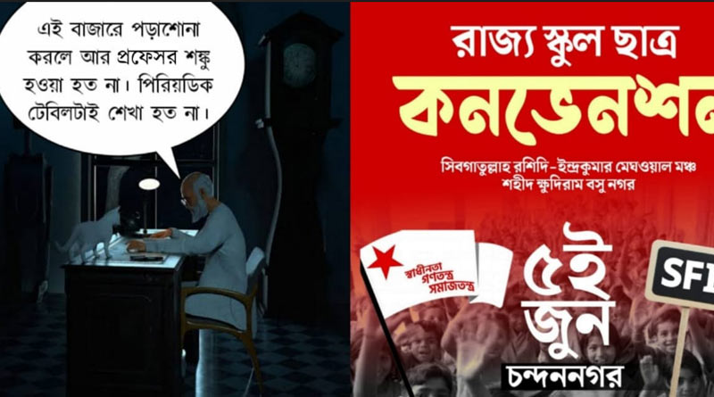 রূপায়ণ গঙ্গোপাধ্যায়: এবার কমিকসের প্রিয় চরিত্রগুলিকে হাতিয়ার করে স্কুল ছাত্রদের কাছে পৌঁছতে চাইছে সিপিএমের ছাত্র সংগঠন এসএফআই (SFI)। আর তাই স্কুল ছাত্র কনভেনশনকে কেন্দ্র করে এসএফআইয়ের ডিজিটাল পোস্টারে (Digital poster) হাজির ফেলুদা, শঙ্কু, নন্টে-ফন্টে, টিনটিনের মতো চরিত্ররা। স্কুল শিক্ষা ব্যবস্থা ও জাতীয় শিক্ষানীতির প্রতিবাদ, এসব ইস্যু রয়েছে এসএফআইয়ের স্কুল ছাত্র কনভেনশনে।