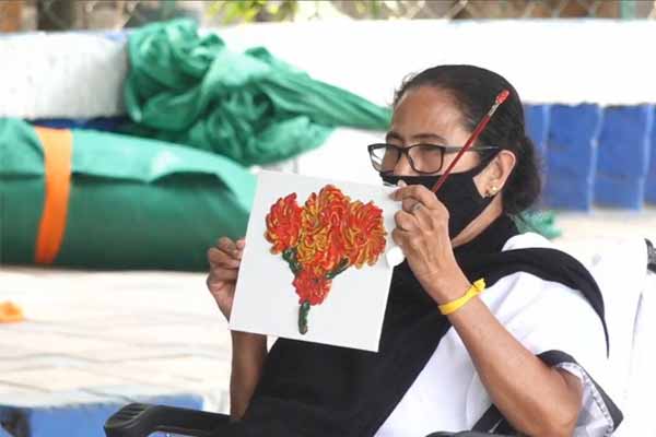 বেলা ১২.০৯: ধরনাস্থলে বসে ছবি আঁকছেন তৃণমূল নেত্রী মমতা বন্দ্যোপাধ্যায়। তিনটি ছবি এঁকেছেন তিনি।