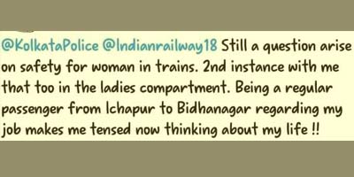 এই ঘটনার পর রেল পুলিশ অভিযোগ নিতে গড়িমসি করে বলে অভিযোগ তোলেন তরুণী। সল্টলেক সেক্টর ফাইভের একটি সংস্থার কর্মী ওই তরুণীর অভিযোগ, বুধবারের পর তিনি বৃহস্পতিবার ভোরে কাজ থেকে ফেরার পথে দমদম রেল পুলিশ থানায় অভিযোগ দায়ের করতে গেলে জানানো হয়, এখন থানা বন্ধ। সাড়ে আটটার পর অফিসার এলে আসবেন। মহিলা পুলিশ কর্মীর ওই কথার পর স্বামীকে নিয়ে তরুণী শিয়ালদহ রেল পুলিশে গেলে সেখান থেকেও ফিরিয়ে দেওয়া হয় বলে তিনি অভিযোগ করেন। এরপর ওই তরুণী সোশ্যাল মিডিয়ায় নিরাপত্তার অভাব নিয়ে অভিযোগ তুলেছেন। দমদম রেল পুলিশ অবশ্য জানিয়েছে, কোনও অভিযোগ তারা এখনও পাননি। তবে ট্রেনে এই ধরনের ঘটনায় নিরাপত্তার চরম অভাব বোধ করছেন মহিলা যাত্রীরা।