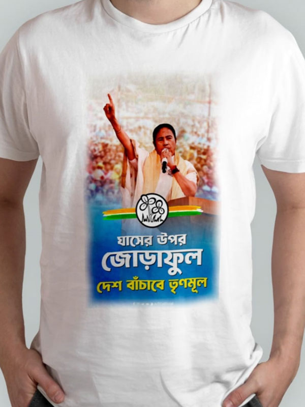 পোশাকে রকমারি আরও আছে। টিশার্টের উপর তৃণমূল নেত্রীর দুটি ছবি দিয়ে লেখা রয়েছে, ‘মমতা মানেই আবেগ’। একটি ছবিতে শিশু কোলে রয়েছেন নেত্রী। পুরুলিয়া জেলা তৃণমূল সভাপতি সৌমেন বেলথরিয়ার কথায়, “টিশার্ট ছাড়াও আমাদের প্রার্থী শান্তিরাম মাহাতোকে ঘাস ফুল চিহ্নে ভোট দিন এই বার্তা দিয়ে ডিজাইন করা ১০ হাজার টুপি আসছে।” টি- শার্টের ডিজাইন তৈরি করা বারাসতের অরিজিৎ গঙ্গোপাধ্যায় বলেন, “সমগ্র রাজ্যজুড়ে তৃণমূলের এই ধরনের টি শার্ট আমার কাছ থেকে যাচ্ছে। পুরুলিয়াতেও যাবে। প্রাথমিক কথাবার্তা হয়েছে। “