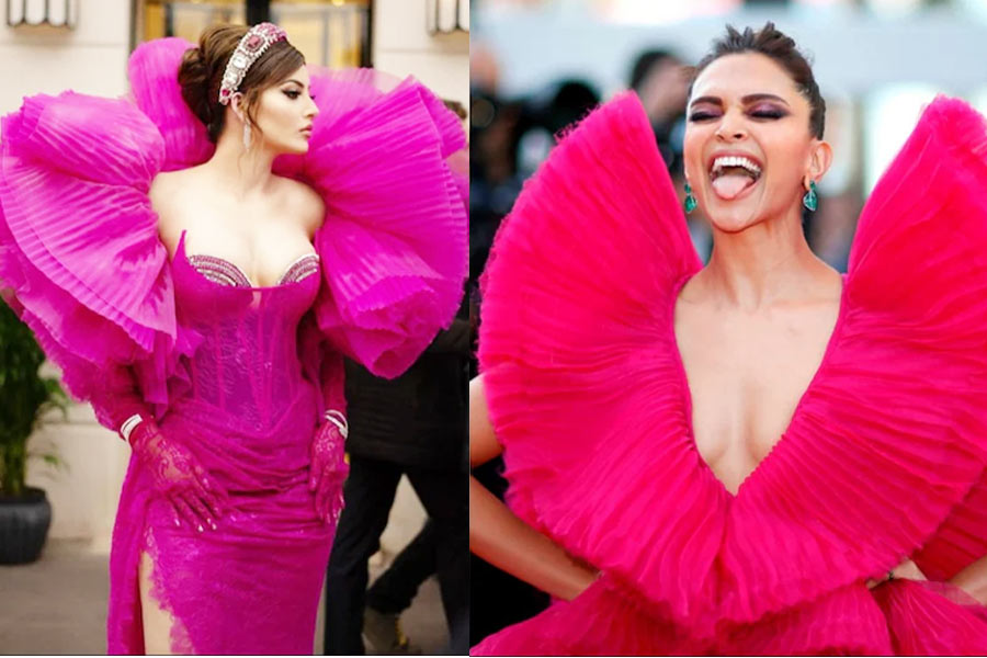 কান ফিল্ম ফেস্টিভ্যালের লাল গালিচা মানেই তাবড় তারকাদের ফ্যাশন ফিরিস্তি। ৭৭তম আসরেও তার অন্যথা হয়নি। যে যাঁর মতো ফ্যাশনিস্তা অবতারে ধরা দিয়েছেন। লাল গালিচায় কখনও লাল শিমারি গাউনে ধরা দিলেন উর্বশী তো কখনও বা আবার ফ্যাশন পুলিশদের আতসকাঁচে তাঁর গোলাপি রঙের নেটপোশাক। উর্বশী যতই দ্যুতি ছড়ান না কেন, সমালোকদের কটুক্তি থেকে বাদ পড়লেন না! জানা গিয়েছে, উর্বশী রাউতেলার গোলাপি পোশাকটি ডিজাইন করেছেন সেলিব্রিটি ডিজাইনার খালেদ ও মারওয়ান। তৈরি হয়েছে লেবাননের বৈরুর আউত কোচার নামে একটি ফ্যাশন হাউসে। যা হুবহু দীপিকার বছরখানেক আগেকার কান পোশাকের মতো দেখতে। উর্বশীর ড্রেসের পেল্লাই সাইজের কলারেও মিল খুঁজে পেলেন নেটিজেনরা।