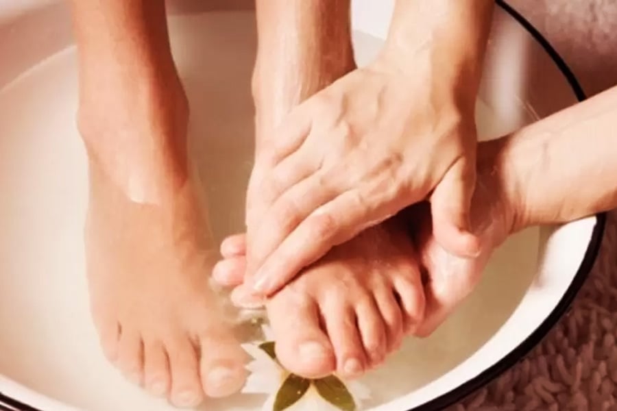 ১) গরম জলে অ্যান্টিসেপ্টিক লিকুইড মিশিয়ে পা ডুবিয়ে রাখুন অন্তত মিনিট পনেরো। যদি সেটা না থাকে, তাহলে সামান্য বাথসল্ট মিশিয়ে ঊষ্ণ জলে পা ধুয়ে নিন। এতে পায়ে থাকা জীবাণু সহজেই দূর হবে।