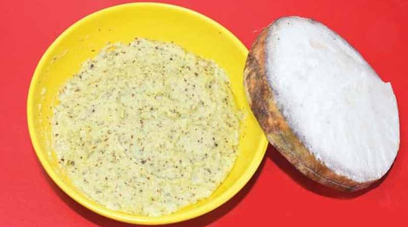 কীভাবে বানাবেন: মানকচু ধুয়ে খোসা ছাড়িয়ে নিন। গ্রেটার দিয়ে কুরিয়ে নিন। কোরানো কচু ভালভাবে চিপে সাদা দুধের মতো রসটুকু বার করে দিন। মিক্সিতে সরষে বাটা, নারকেল কোরা, কচু, লঙ্কা, নুন ও চিনি দিন। সামান্য জল মিশিয়ে পেস্ট করুন। শিলনোড়াও ব্যবহার করতে পারেন। মিক্সি থেকে নামিয়ে কাঁচা সরষের তেল দিয়ে মাখুন। গরম ভাতের সঙ্গে পরিবেশন করুন। জিভে জল আনা স্বাদ পাবেন।