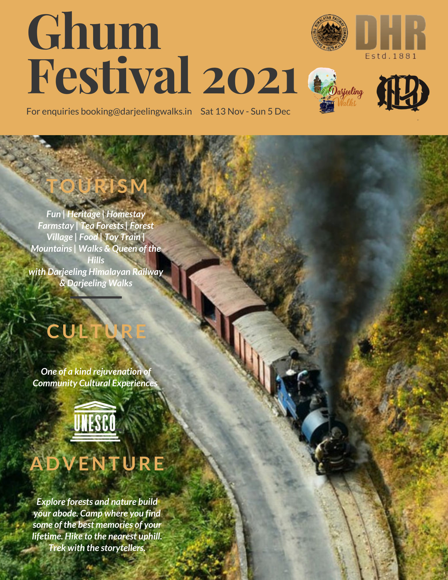 ঘুম উৎসবে থাকবে লোকগান, স্থানীয় শিল্পীদের নৃত্য পরিবেশন। এ ছাড়া পর্যটকদের জন্য প্রতিদিন সকালে থাকবে হেরিটেজ ওয়াক ও ট্র্যাকাথন। এছাড়াও স্থানীয় হস্তশিল্পকে নিয়ে বিশেষ প্রদর্শনীর ব্যবস্থা করা হবে। দার্জিলিং ও ঘুম স্টেশনেই হবে এই প্রদর্শনী। দার্জিলিং স্টেশনের এই উৎসবে স্থানীয় সংস্কৃতি, অ্যাডভেঞ্চার এবং টু্রিজমকে তুলে ধরা হবে। ১৯৯৯ সালের এই দিনটিতে ইউনেস্কোর তরফে বিশ্ব ঐতিহ্য হিসেবে ঘোষণা করা হয়। এই উৎসবের লক্ষ্য হল অতিমারীতে পিছিয়ে পড়া পর্যটনকে চাঙ্গা করা।