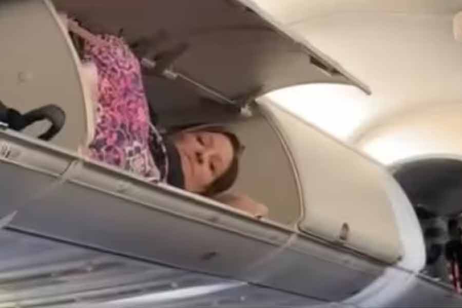 এই অদ্ভুত ঘটনা ঘটেছে, আমেরিকার সাউথওয়েস্ট এয়ারলাইনসের একটি ফ্লাইটে। সেখান থেকেই টিকটকে একটি ভিডিও ভাইরাল হয়েছে। যা ইতিমধ্যেই ৫০ লক্ষ মানুষ দেখে ফেলেছেন। ভাইরাল হওয়া ভিডিওতে দেখা গিয়েছে, এক মহিলা যাত্রী বসার আসন ছেড়ে ওভারহেড বিনে ঢুকে শুয়ে রয়েছেন। আর তাঁর কীর্তি দেখে তখন হাসির রোল উঠেছে গোটা ফ্লাইটে।