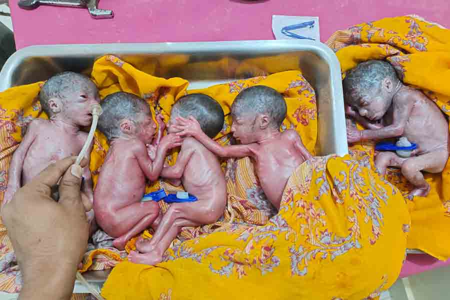 স্ত্রীরোগ বিশেষজ্ঞ ফারজানা নুরি বলেন, “ওই প্রসূতির আল্ট্রাসোনোগ্রাফিতে আগেই জানানো হয়, ওই গর্ভবতীর পাঁচ সন্তান রয়েছে। রবিবার ভোরে ইসলামপুরের আমবাগান এলাকায় এক বেসরকারি নার্সিংহোমে ভর্তি হন গর্ভবতী তাহেরা বেগম। ভর্তির কিছুক্ষণের মধ্যে সিজার ছাড়াই স্বাভাবিকভাবে পাঁচ নবজাতকের জন্ম হয়।” আপাতত সদ্যোজাতরাও ভালো আছে বলেই খবর। সদ্য পাঁচ নাতনির দাদু জাহেদুর রহমান বলেন, “আমি অবাক। একসঙ্গে পাঁচ নাতনির মুখ দেখলাম।”