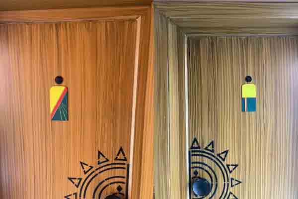জয়পুরের এক দক্ষিণী রেস্তরাঁর শৌচাগার চেনার জন্য দরজায় ঝোলানো চিহ্ন সোশ্যাল মিডিয়ায় ভাইরাল। যেখানে দেখা গিয়েছে, দুই শৌচাগারের দরজায় টাঙানো হয়েছে দু’টি কাঠের পুতুলের আকৃতি। মহিলাদের শৌচাগারের দরজায় টাঙানো পুতুলের গায়ে রয়েছে একটি লাল চওড়া দাগ, যার মাধ্যমে শাড়িকে বোঝানোর চেষ্টা হয়েছে। পাশের শৌচাগারের দরজার পুতুলের কোমরের কাছ থেকে একটি দাগ রয়েছে। যার মাধ্যমে পুরুষদের ঐতিহ্যবাহী পোশাক ‘মান্ডু’ বোঝানোর চেষ্টা করা হয়েছে। কিন্তু দু’টির পার্খক্য এতটাই সূক্ষ্ম যে তাড়াহুড়োতে বুঝে ওঠা চাপ।
