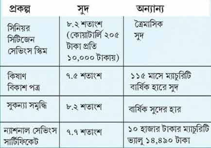 বিভিন্ন প্রকল্পে সুদের হার এবং অন্যান্য শর্তাবলী আলাদা ভাবে জেনে নেওয়া উচিত। সংক্ষেপে এই চার্টে জরুরি তথ্য দেওয়া হল :