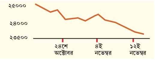এই রকমই হয়। তাই এটা ইক্যুইটি মার্কেট বা শেয়ার বাজার। যেটা হল, সেটা হচ্ছে নিফটি তার সব সময়ের উচ্চতা থেকে আজ হঠাৎ করে অনেকটা নিচে। মানে ২৬,২৭০ পয়েন্ট থেকে ২৩,৯০৭ পয়েন্ট যা কি না ১০ শতাংশ ডাউন। কী কারণে হল এটা? তবে কি ভারতীয় অর্থব্যবস্থা খারাপ হয়ে গেল? না, একেবারেই না। ইন্ডিয়া স্টোরি সেই একই রকম আছে। যেটা হয়েছে, তার জন্য কিছু সমসাময়িক ব্যাপার দায়ী। যেমন–