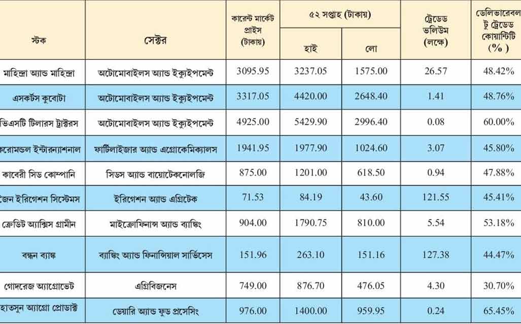 ১- ডাইভারসিফিকেশন আনা সম্ভব, পোর্টফোলিওয় থাকবে নানা ধরনের (“রুরাল ইকোনমি” নির্ভর) স্টক।