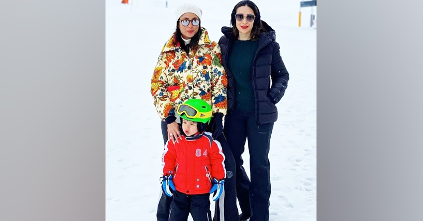 নিউ ইয়ারকে স্বাগত জানাতে বরফের দেশে মা করিনা এবং মাসি করিশ্মার সঙ্গে ছোট্ট তৈমুর।