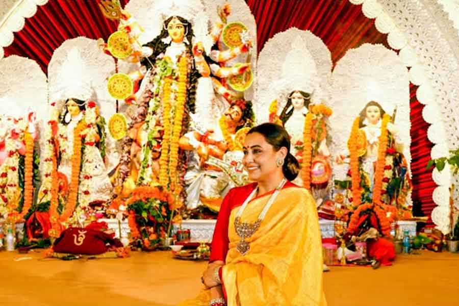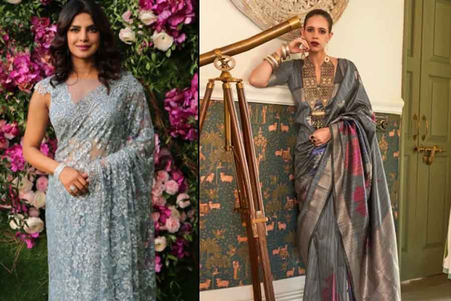 ধূসর রঙের শাড়িও পরা যেতে পারে। তবে পুজোর কটাদিন কালো রঙের শাড়ি না পরা ভালো বলেই মনে করেন জ্যোতিষ শাস্ত্রবিদরা।