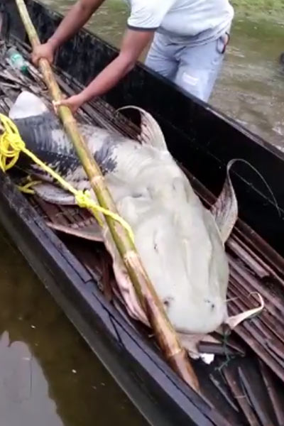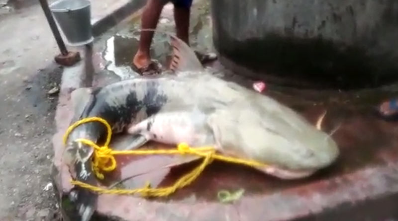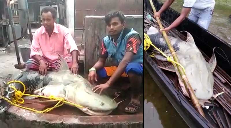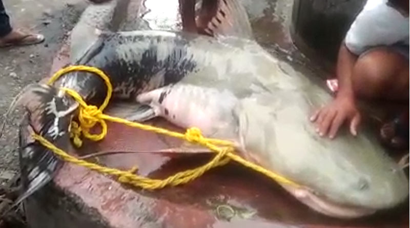 তিস্তায় খোঁজ মিলল 'জলদৈত্য'র। মৎস্যজীবীদের জালে ধরা পড়ল ৮০ কেজি ওজনের বাঘা আড়।