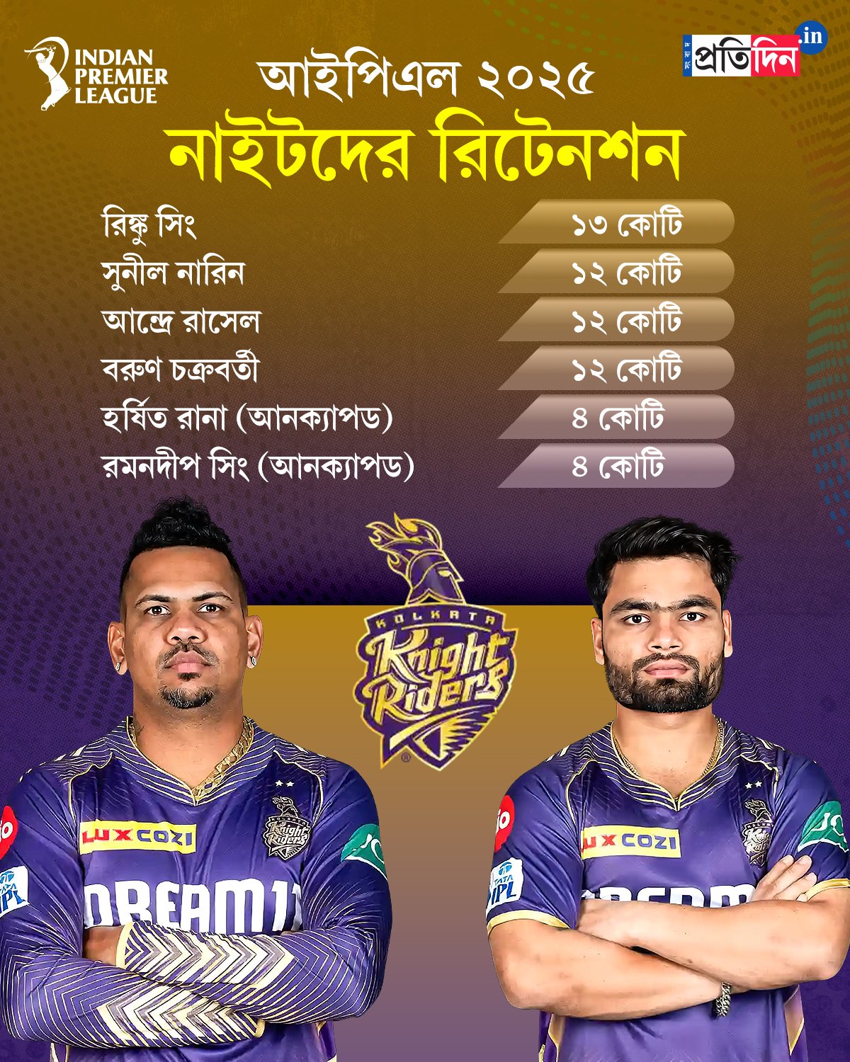 কলকাতা নাইট রাইডার্সের রিটেনশন: