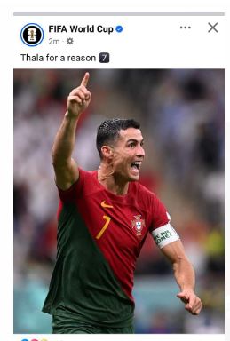 সংবাদ প্রতিদিন ডিজিটাল ডেস্ক: মহেন্দ্র সিং ধোনির প্রতি অনন্ত ভালোবাসা মানুষের। ভৌগলিক সীমানা অতিক্রম করে তা ছড়িয়ে পড়েছে বিশ্বের সর্বত্র। ধোনির ক্যারিশমাকে স্বীকার করে নিতে বাধ্য হল ফিফাও। ফিফা বিশ্বকাপের সোশাল মিডিয়া পেজে, রোনাল্ডোর ছবি দিয়ে লেখা হল, থালা ফর আ রিজন। ফিফা মিলিয়ে দিল ধোনি আর ক্রিশ্চিয়ানো রোনাল্ডোকে।