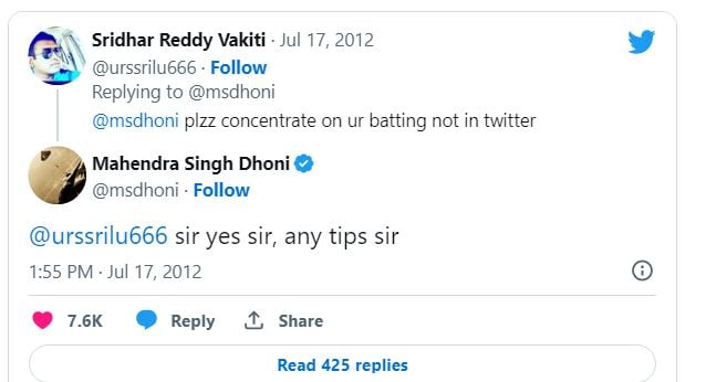 সংবাদ প্রতিদিন ডিজিটাল ডেস্ক: ফোন ব্যবহার করেন না মহেন্দ্র সিং ধোনি (MS Dhoni)। সোশ্যাল মিডিয়াতেও তিনি খুব একটা সক্রিয় নন। কিন্তু একসময়ে সোশ্যাল মিডিয়ায় টুইট করতেন ধোনি। একবার এক নেটিজেন তাঁকে সোশ্যাল মিডিয়ায় পরামর্শ দিয়ে বলেছিলেন, দয়া করে ব্যাটিংয়ে মন দিন, টুইটারে নয়। সংশ্লিষ্ট নেটিজেনের এমন পরামর্শের জবাবে ধোনি জবাব দেন, ”স্যর ইয়েস স্যর, কোনও পরামর্শ আছে স্যর।”