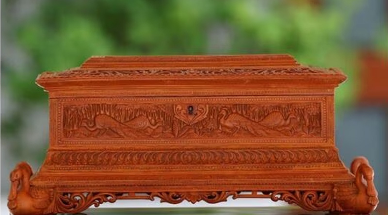 Prime Minister Narendra Modi presents a special sandalwood box to US President Joe Biden that has been handcrafted by a master craftsman from Jaipur, Rajasthan. The sandalwood sourced from Mysore, Karnataka has intricately carved flora and fauna patterns.