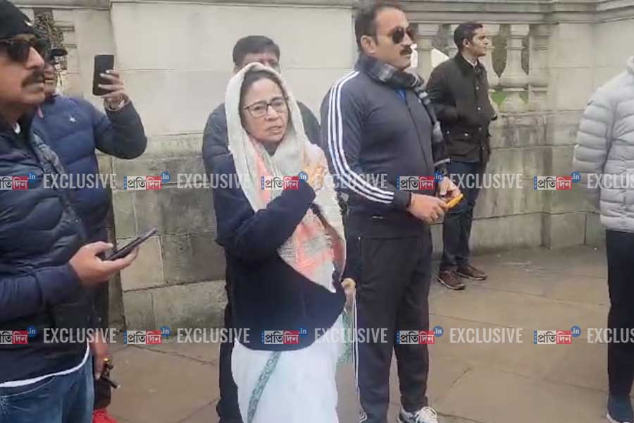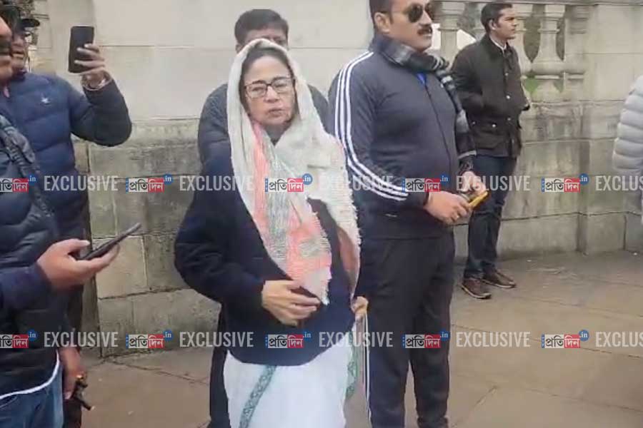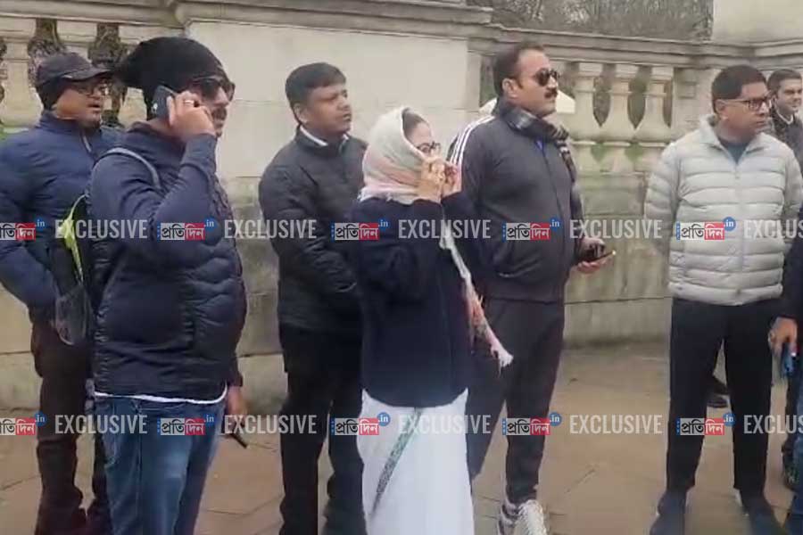 কুণাল ঘোষ ও কিংশুক প্রামাণিক (লন্ডন থেকে মুখ্যমন্ত্রীর সফরসঙ্গী): মেঘলা আকাশ। কনকনে ঠান্ডা হাওয়া। লন্ডনের পারদ নেমেছে ৪ ডিগ্রিতে। সোমবার সকালে এই আবহাওয়ায় পায়ে হাওয়াই চটি, শাড়ি পরেই বাকিংহাম প্যালেস ও হাইড পার্কে প্রাতঃভ্রমণ সারলেন মুখ্যমন্ত্রী মমতা বন্দ্যোপাধ্যায় (Mamata Banerjee)। এদিন সন্ধ্যায় ভারতীয় হাই কমিশনে আমন্ত্রিত তিনি। রয়েছে ঠাসা কর্মসূচি। তার আগে বেশ কিছুক্ষণ হাঁটাহাঁটি করে কার্যত ‘ওয়ার্ম আপ’ সেরে ফেললেন তিনি। মুখ্যমন্ত্রীর নিজের কথাতেই, “আজ ওয়াক নয়, ওয়ার্ম আপ।”